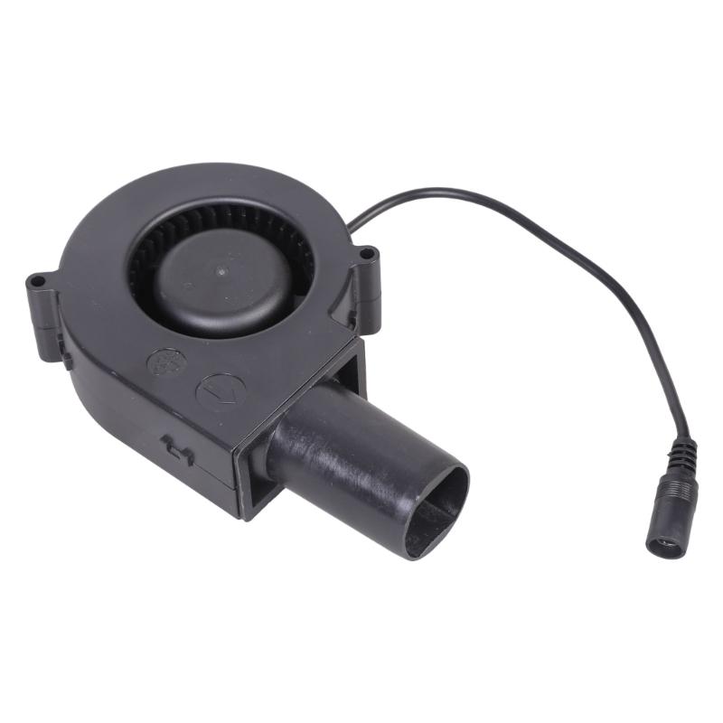 The 12V 9733 blower delivers powerful 5500RPM airflows with double ball bearings for durability, featuring a 5.5x2.1mm female input (center positive) for outdoor power supplies and adapters.