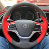 Handgjord Svart Blå läderbilrattöverdrag för Hyundai Elantra 4 2016 2017 Solaris 2017 Accent 2018