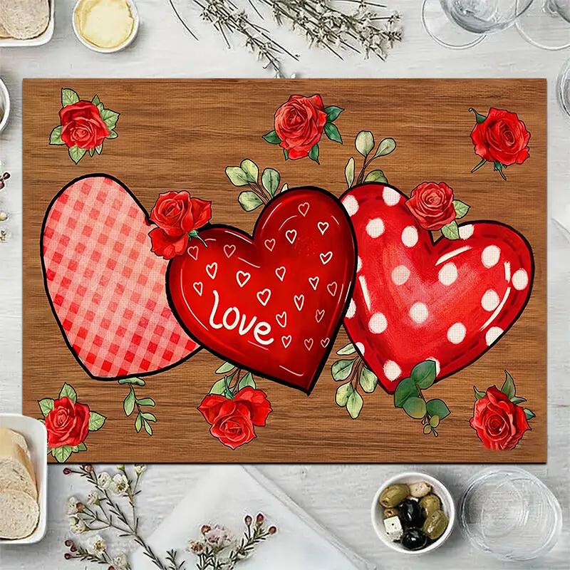 1/2/4/6pcspcs Valentine's Day Placemats Suitable for Party, Elegant Heart & Table Settings, Durable Polyester Square Placemats, Hand Wash Only