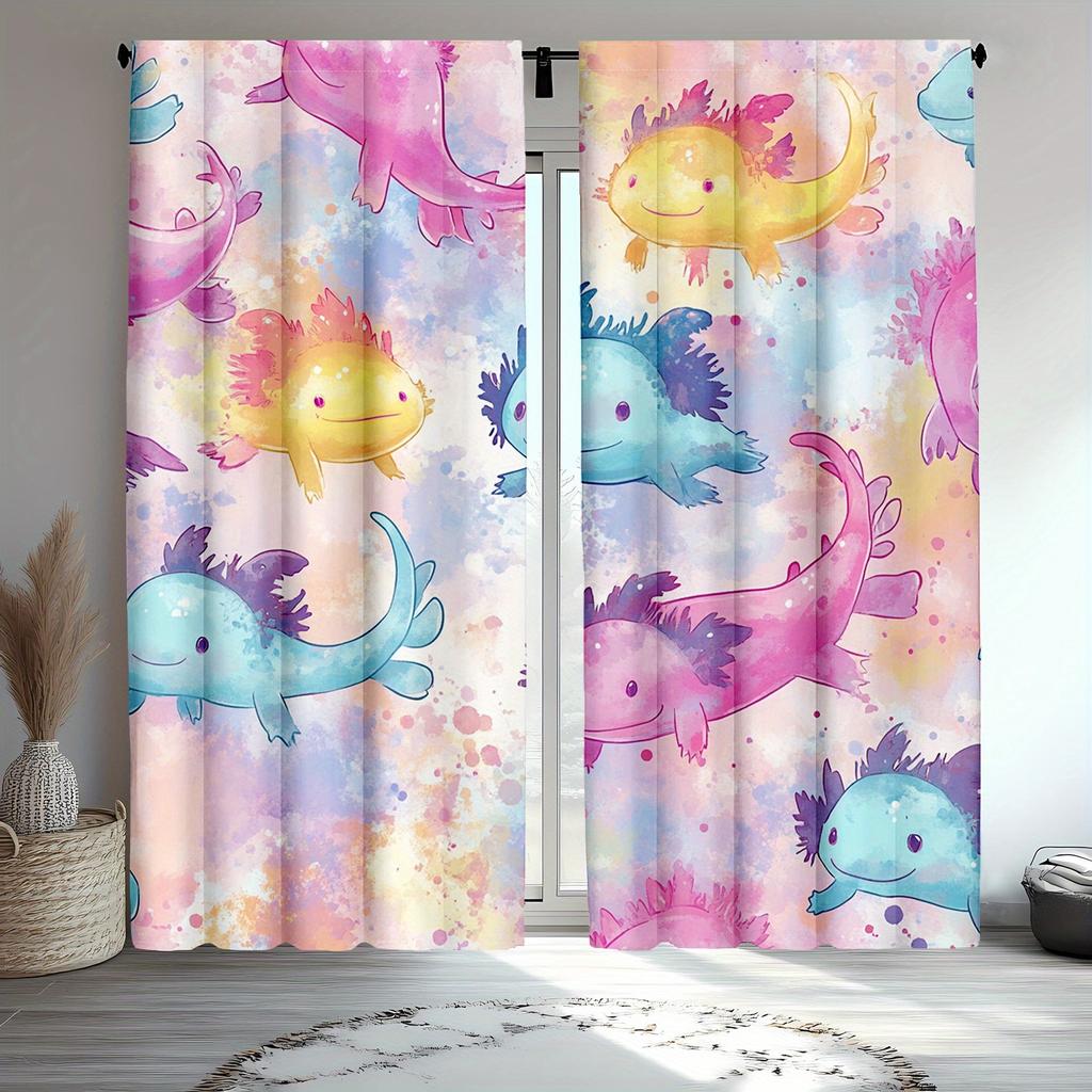2pcs Kawaii Axolotl Blackout Curtains Colorful Tie Dye Salamander Design Drapes