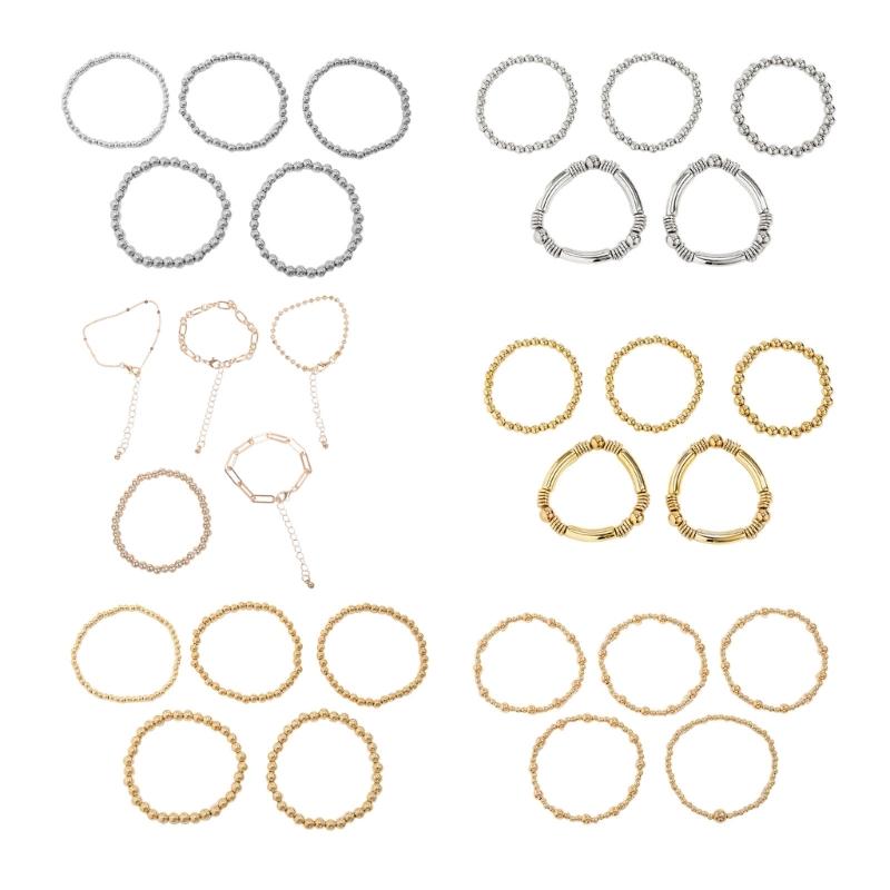 Pack of 5 Handmade Metal Beaded Bracelet Set Stackable Beaded Hand Chain Elegant Jewelry Gift For Any Occasion