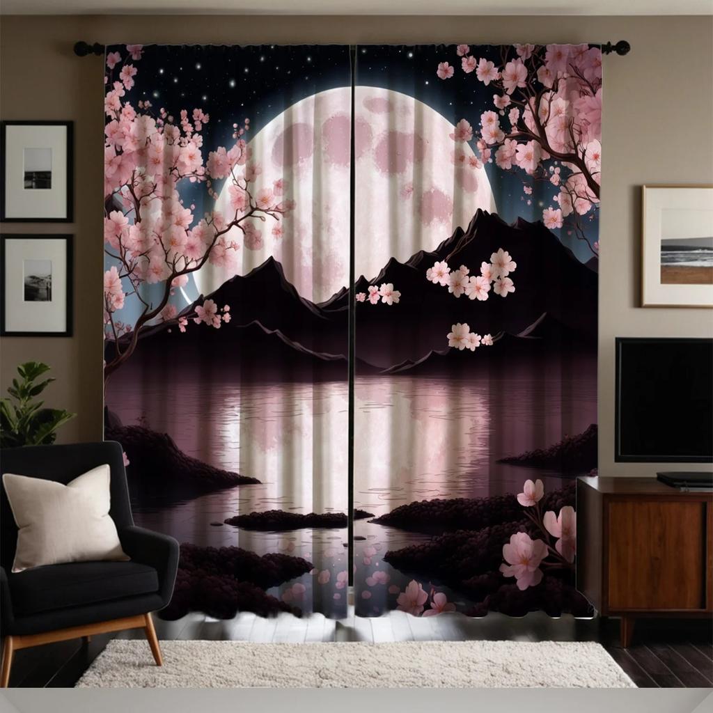 2pcs Floral Blossom Curtains Polyester Fabric Window Decor for Home Decor Rod Pocket Curtains