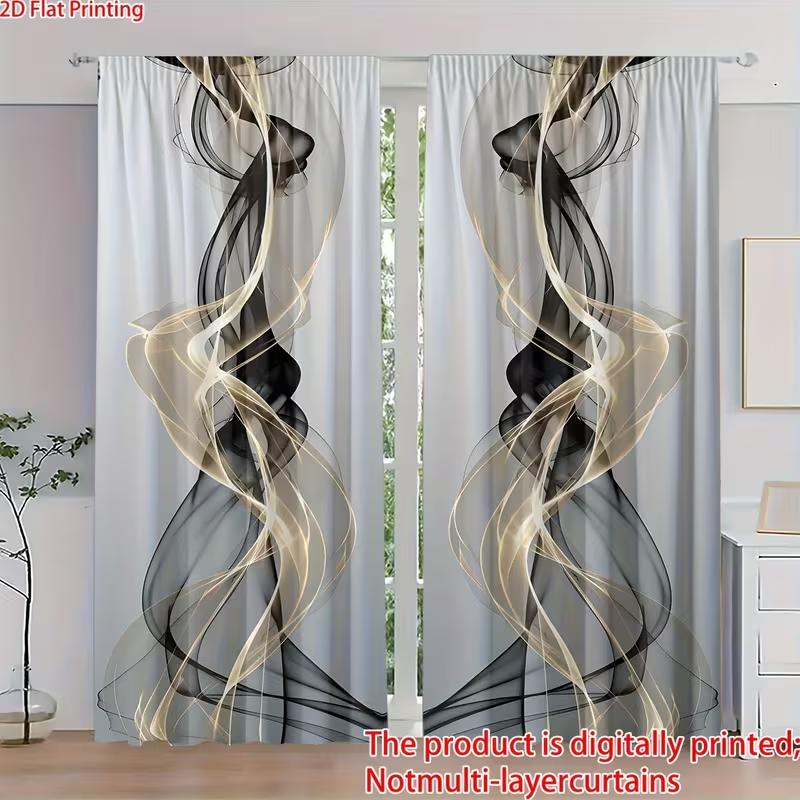 2 st Svarta Guld Abstrakta Rök Mönstrade Gardiner Design för Vardagsrum Sovrum Modernt Hem Fönster Stångficka Gardiner