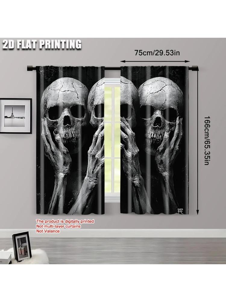 2pcs Curtains Roller Blinds print Black Skull Print 100% Polyester (without rod) Stuff Clearance Use for Bedroom
