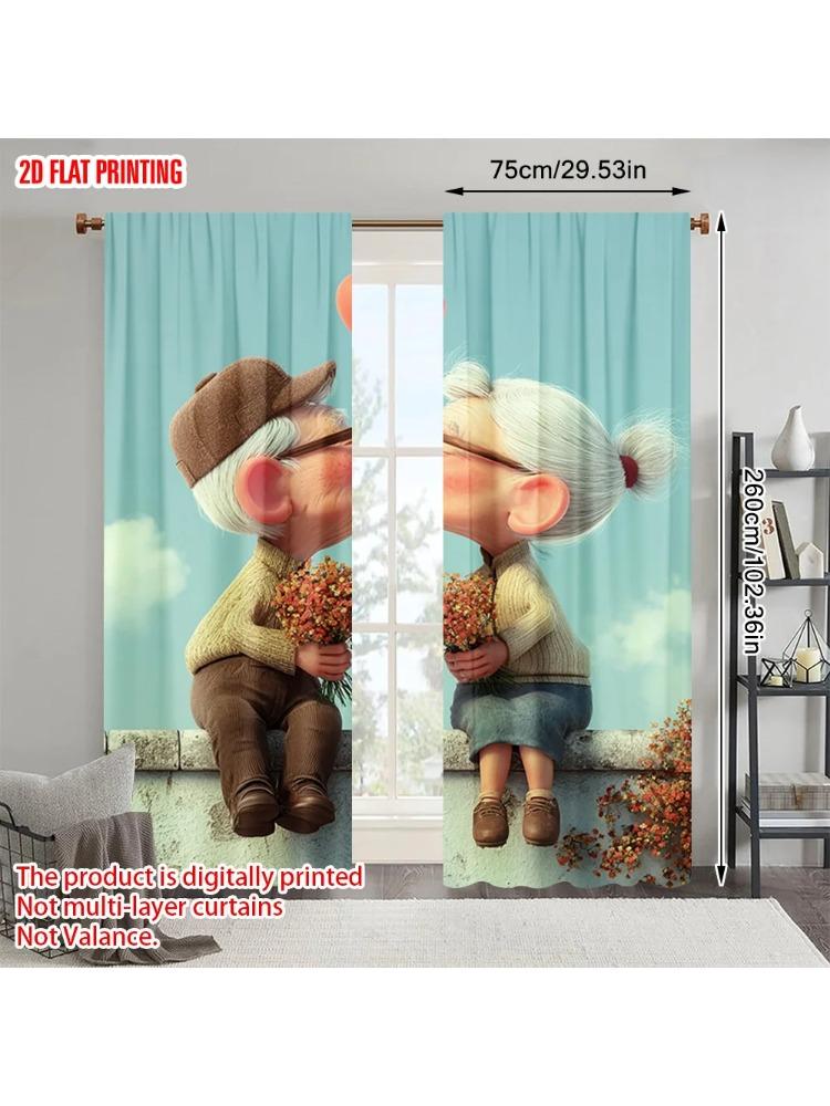 2pcs plane printing Print Curtains Grandparents embrace1 Polyester (without rod) Room Decor for Kitchen Bedroom & Living