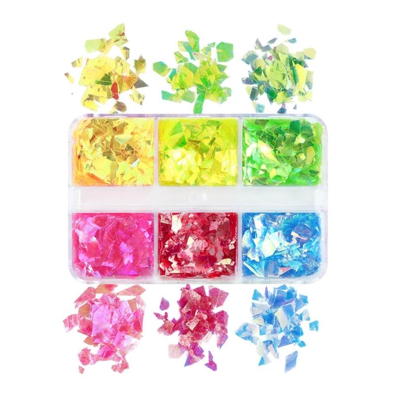 Comes in a variety of shapes, irregular, add some more sparkles to your nails with this enchanting collection of 6-grid nail art glitters.