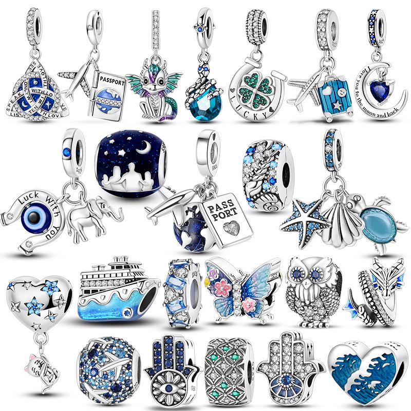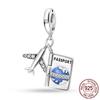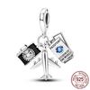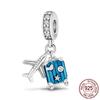 Mula Koppar Blå Resa Flygplan Berlocker Hänge Pärlor Passar Originalpan Armband Smycken För Kvinnor Diy Gåva