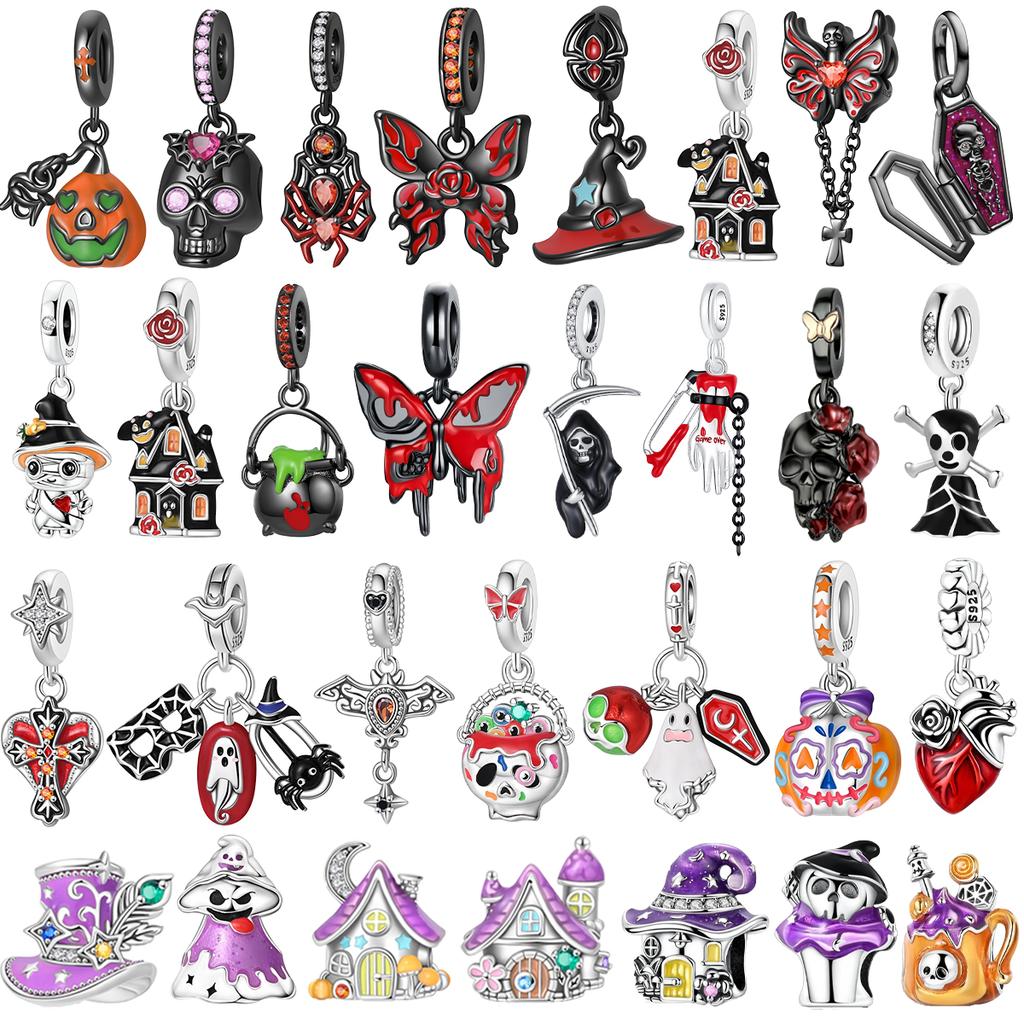 Halloween Copper Skull Charm Luminous Pumpkin Bat Ghost Coffin Bead Pendant Necklace Bracelet Diy Jewelry Gift