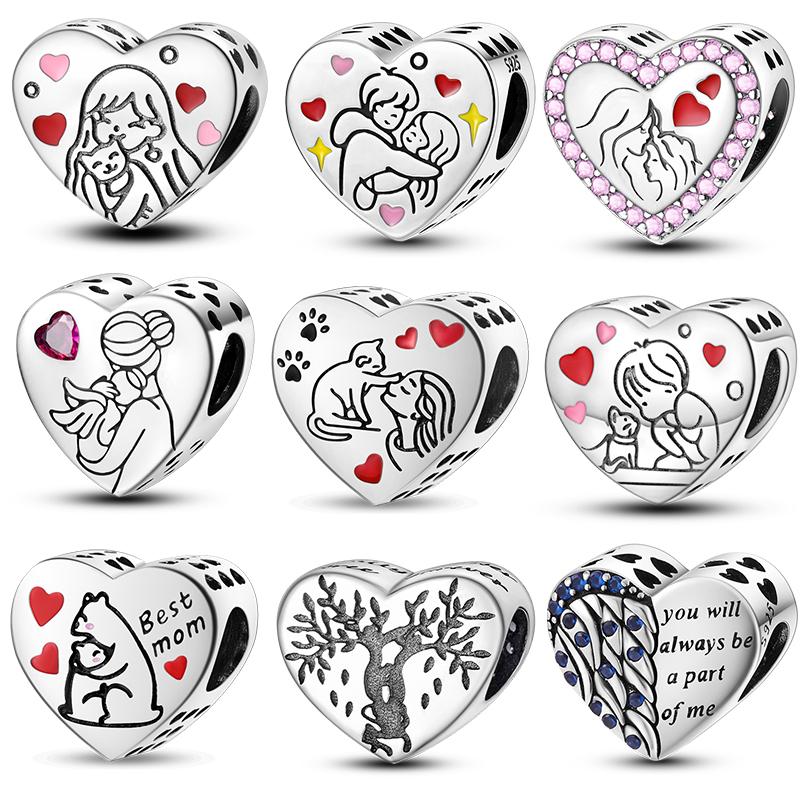 Koppar Kärlekshjärta Rund Känslomässig Serie Glänsande Zirkon Berlockpärlor Passar Bra Pan Originalarmband DIY Fest