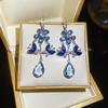 Silver Needle French Court Style Blue Flower Zircon Earrings Light Luxury High-end Stud Earrings Exquisite Niche Earrings