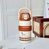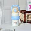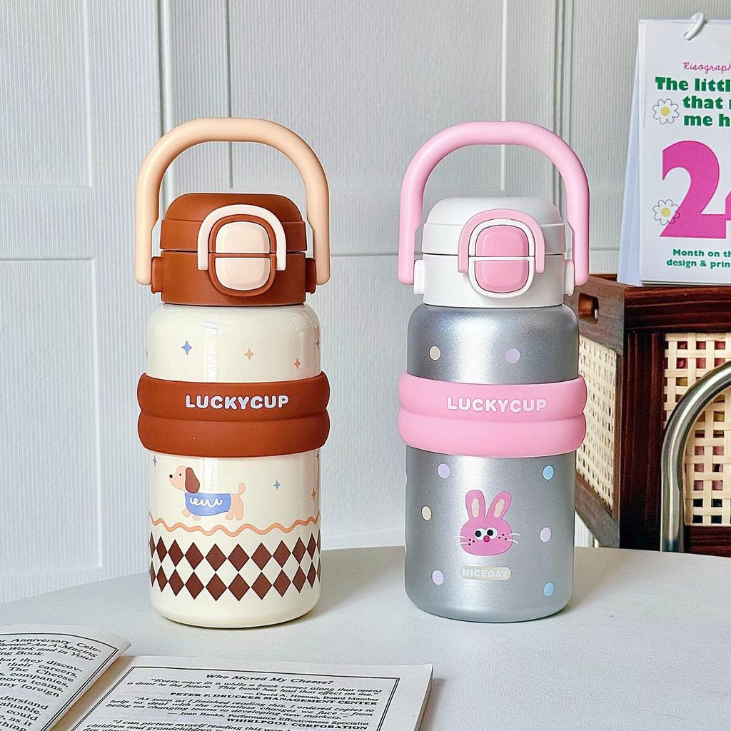 Tecknad söt termosmugg flickor högt värde rostfritt stål sugrörsmugg student tecknad stor kapacitet bärbart handtagsmugg
