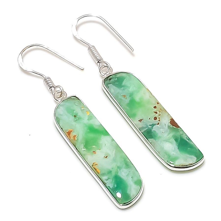 Naturlig Krisopras Ädelsten 925 Sterling Silver Smycke Örhänge 2,17" AEE-10676