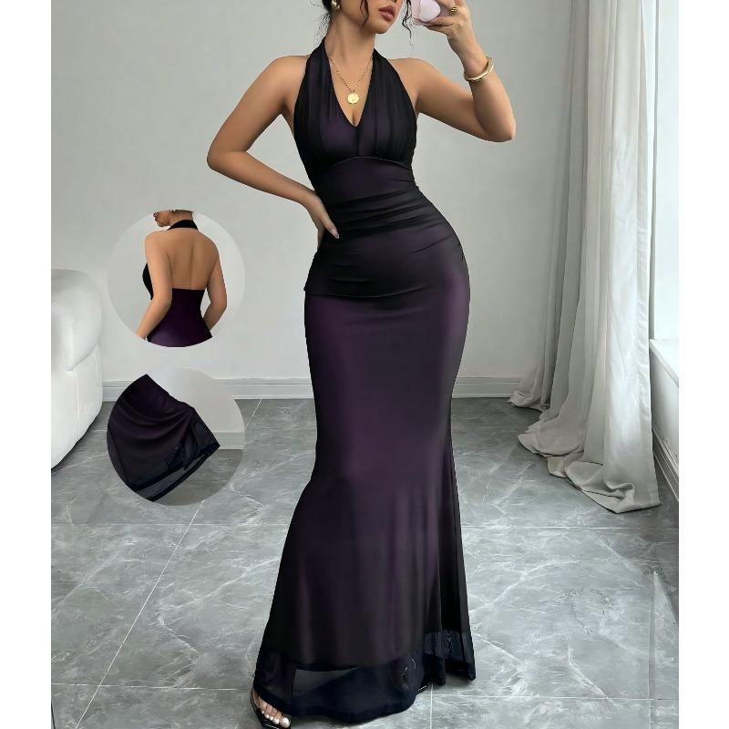 2025 Ny Sommar Dam Sexig Halterneck Nät Genomskinlig Lyst Ärmlös Klänning