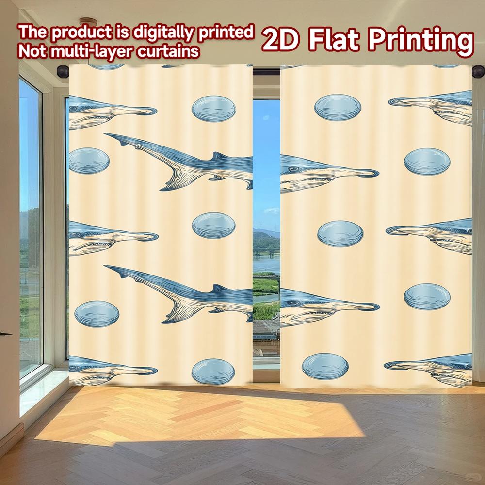 2D FLAT PRINTING 2pcs Curtains (Without Rod) Funny Shark Illustration Holiday April Fools is Day Printed Curtains Versatile