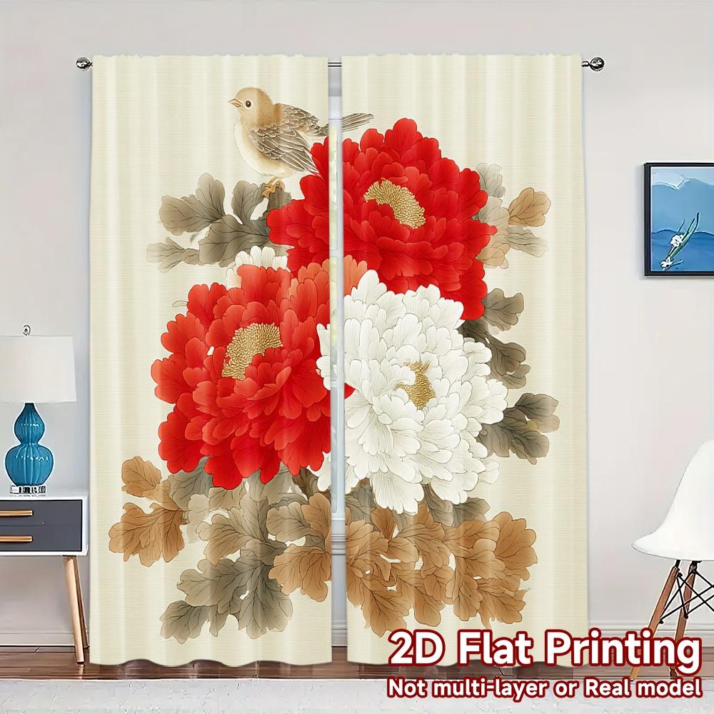 2D FLAT PRINTING 2pcs Curtains (Without Rod) Floral Elegance with Birds Women is Day Festival Popular Curtains&Drapes Versatile