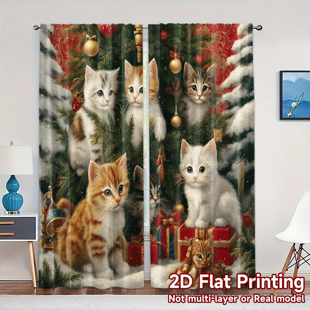 2D Flat Printing JIT 2pcs Curtains (Without Rod) Festive Feline Forest Chic Curtain Fabric Versatile Durable Polyester Curtains