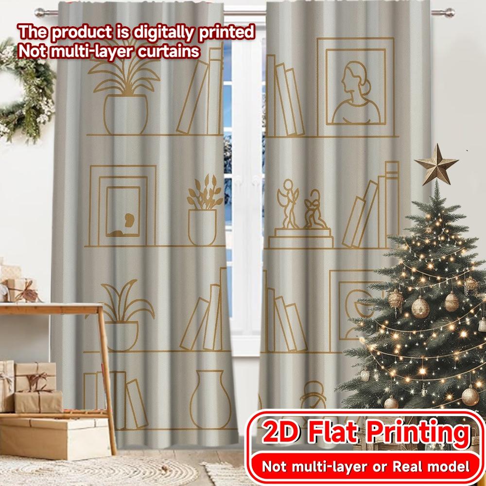 2D Flat Printing 2pcs Curated Shelf Pattern Chic Curtains Durable Polyester Curtains Decorations Ldeal for Living Room Bedroom