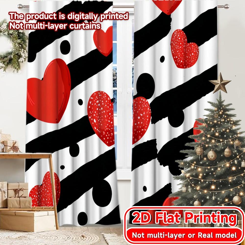 2D Flat Printing 2pcs Heartful Stripes Print Chic Curtains Polyester Curtains Versatile All Perfect for Bedroom & Various Living