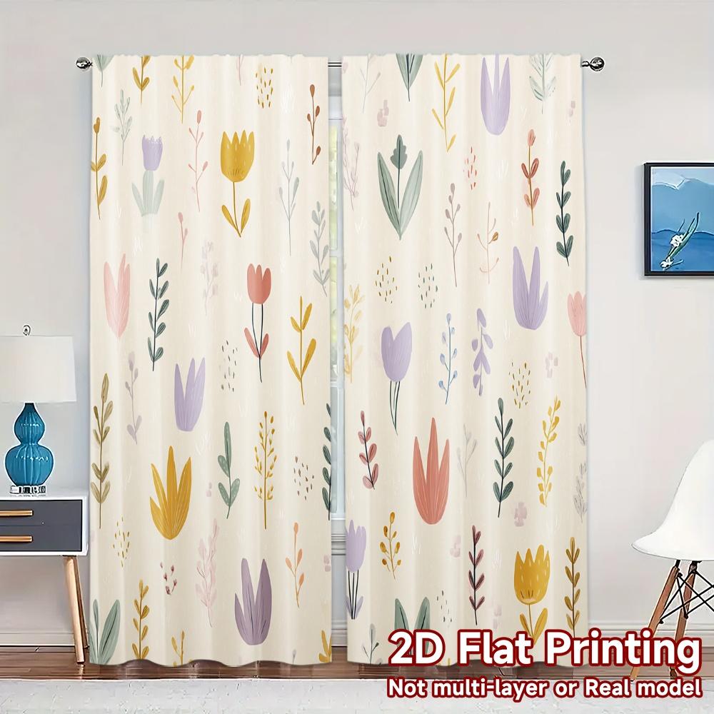 2D FLAT PRINTING 2pcs Curtains (Without Rod) Floral Spring Celebration Design (3) Holiday Ramadan Printed Curtains Versatile