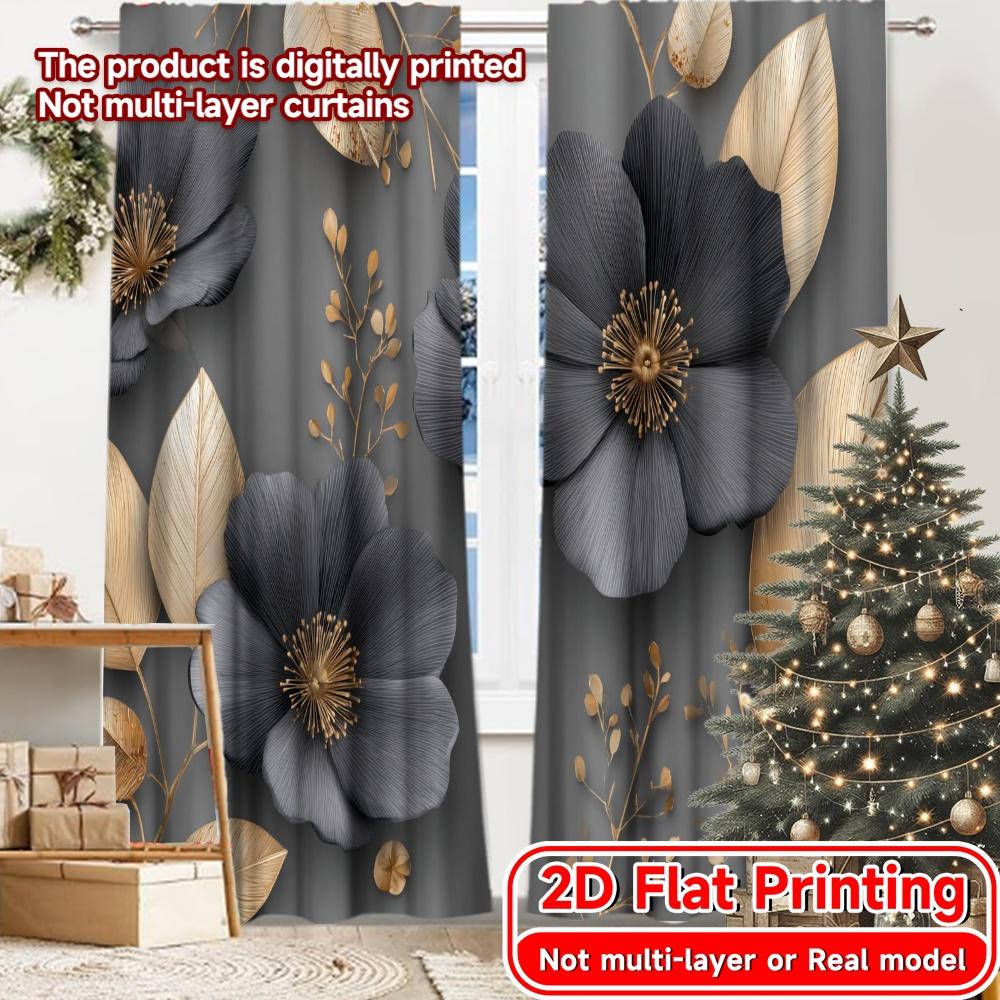2D Flat Printing 2pcs Midnight Blossoms Contemporary Chic Curtains Versatile Polyester Curtains Art Deco Festive Ldeal for