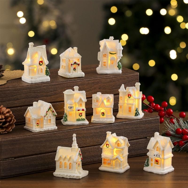 Miniature Resin Houses Chritmas Light Up Building Figurine For Kids Holiday Gift Seasonal Party Decoration