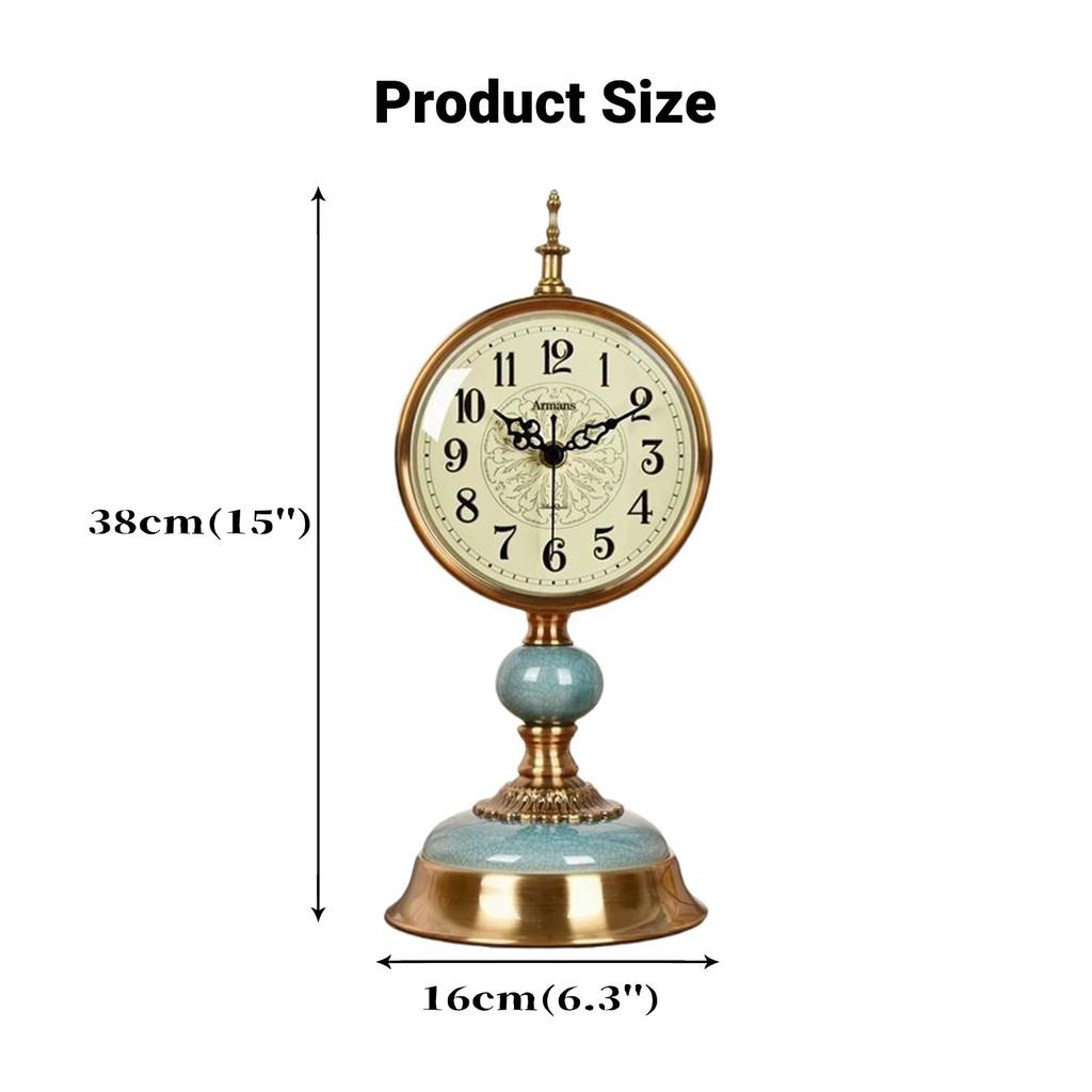 Luxury European Vintage Table Clock Large 38cm Silent Non-Ticking Metal Ceramic Desk Clock for Living Room Mantel Office Decro