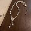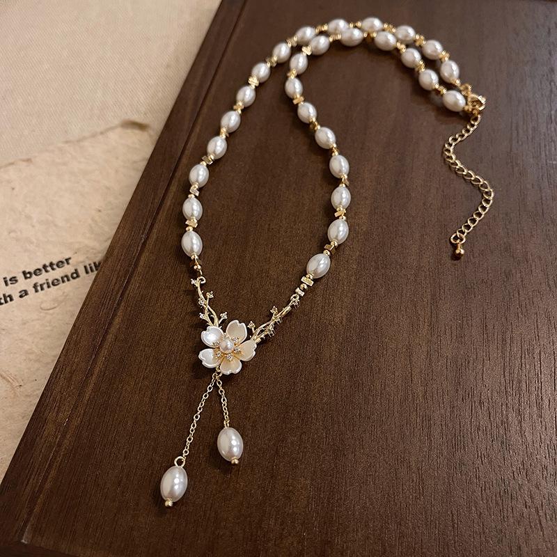 Real gold zircon flower fringed pearl necklace temperament collarbone chain French necklace wholesale