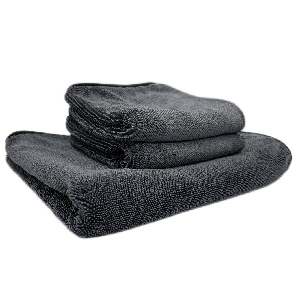 TARO WORKS Car Wash Super Dryer Microfiber 600GSM 1 2 Medium Towels, Absorbent, Cloths, Heavyweight, Gray, Large,