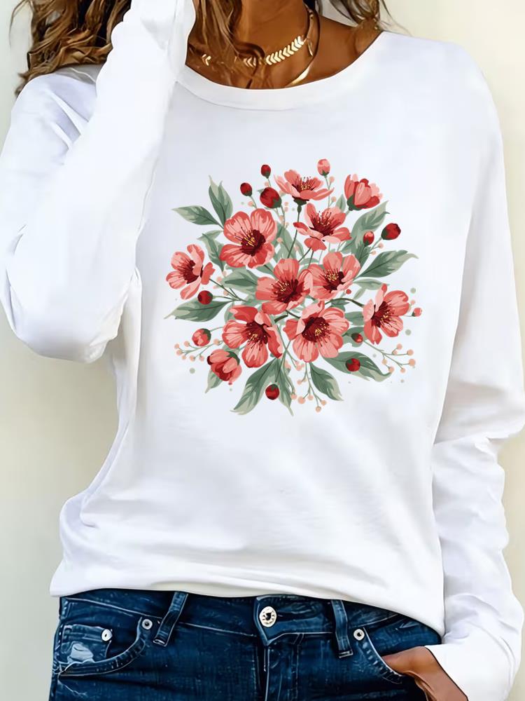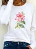 (Asian Size) flower style Clothing Casual Tee Lady Printed o-neck Long Sleeve T Shirt Women Female Fashion Top Graphic T-shirts