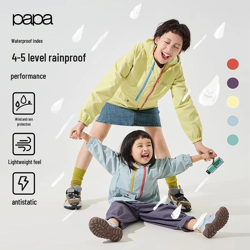 Papa Kids' and Youth Autumn Windproof Hooded Jacket