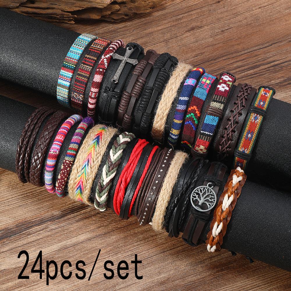 European and American ethnic wind alloy life tree hemp rope leather combination woven hand rope Amazon DIY men's bracelet