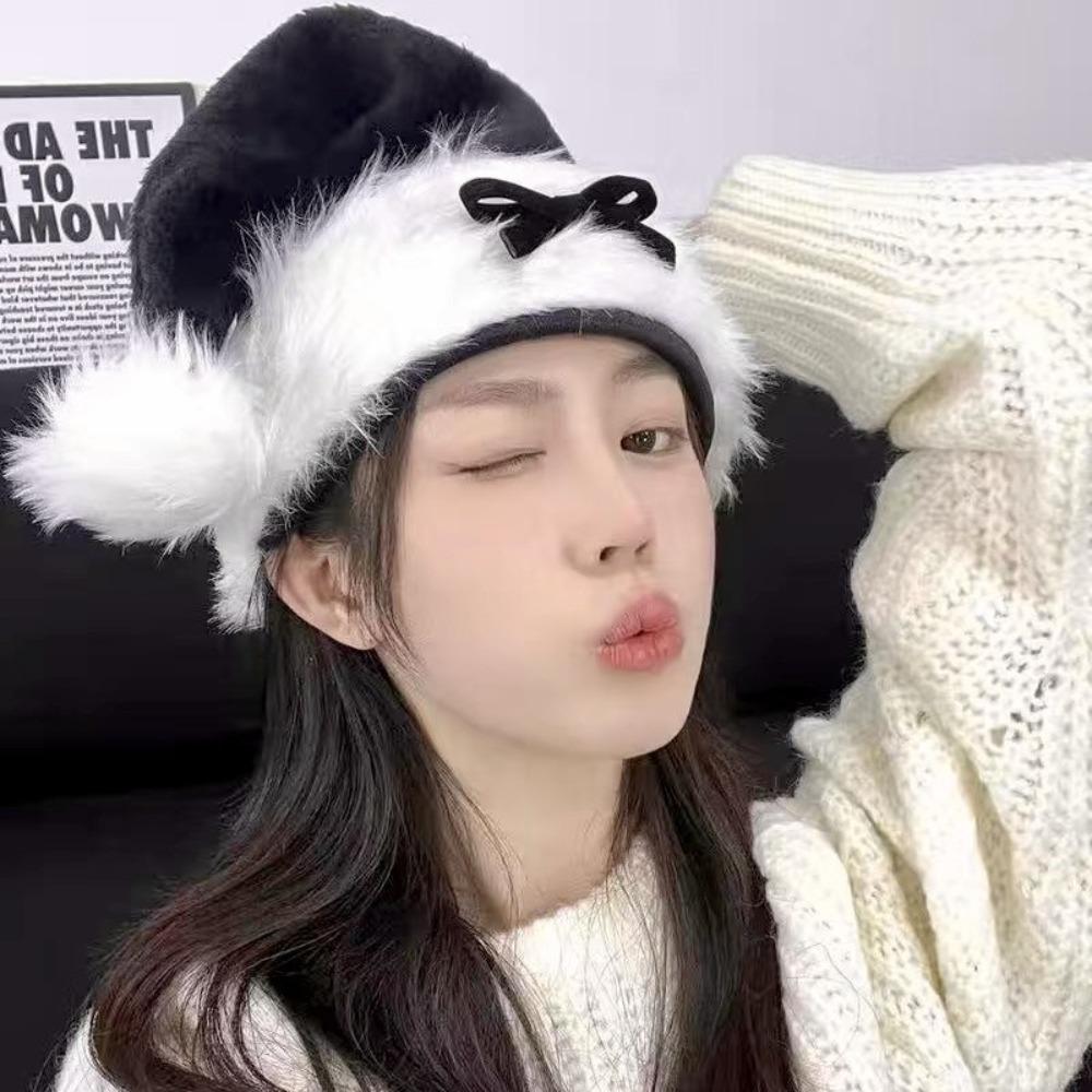 Ny Röd Julhatt Svart Damturban Jultomtehatt Cosplaytillbehör Rosettdekorerad Keps Festtillbehör