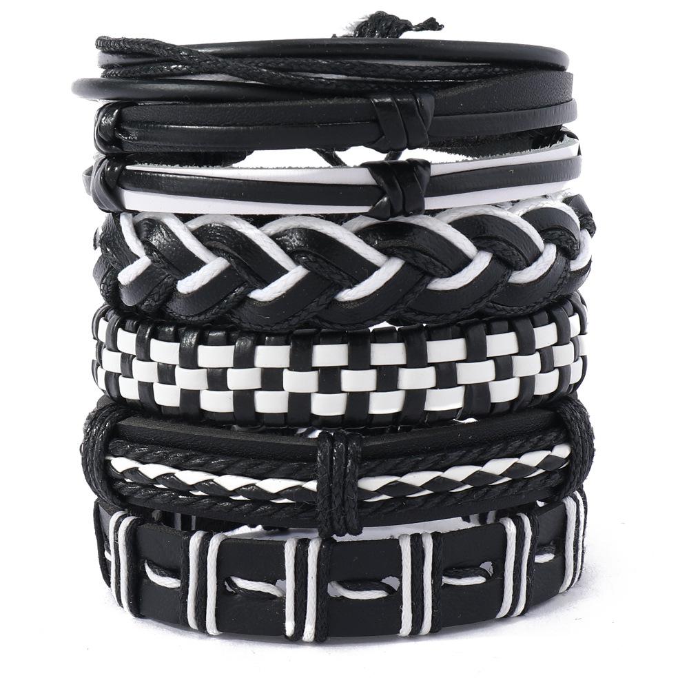 Foreign trade new street hip-hop style adjustable leather woven hand rope set, cross-border men's DIY leather bracelet