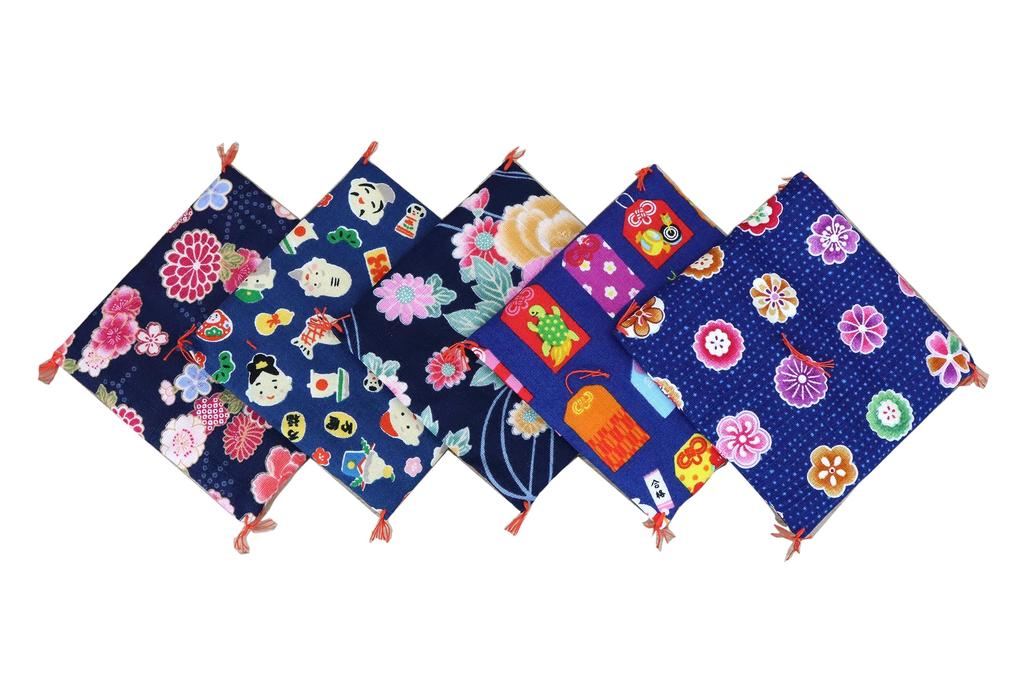 Castle Enterprises Mini Cushion for 5 Assorted Designs Random Pattern x Made in Japan Maneki-neko (Lucky Cat) Ornaments, (Blue), (10cm 10cm),