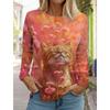 3D-utskrift, dam, t-shirts, mode, toppar, långärmad, rund hals, höst, dagligen, mode, tröja,