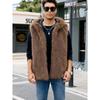Herrväst med huva i randigt fuskpäls Varm Ärmlös Casual Väst