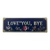 Denna väggskylt i metall med texten "Love You, Bye" är utformad för att ge charm och värme till dörrar, entréer, hallar och garage.. Tillverkad av slitstarkt aluminium med en rustik, åldrad finish, erbjuder den en autentisk vintage-look som kompletterar inredningsstilar som lantlig, vintage och modern country..