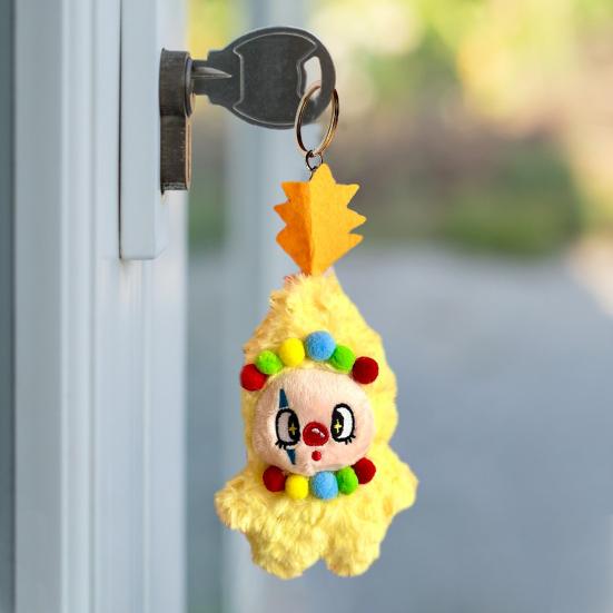 Med en unik clowninspirerad design med färgglada pälstussar och uttrycksfulla broderade ansiktsdrag utmärker sig detta hänge som en charmig visuell accent. Noggrant hantverk säkerställer tydliga sömmar och prydligt arrangerade detaljer, vilket framhäver dess högkvalitativa finish.. Idealisk för dem som söker en lekfull men ändå personlig dekorativ pjäs som bryter av från traditionella plyschstilar.