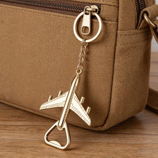 Denna flygplansformade flasköppnare kombinerar praktiskhet och stil i en kompakt och lätt design, perfekt för vardagsbruk.. Tillverkad av högkvalitativ metall garanterar den hållbarhet och långvarig användning, oavsett om den fästs på dina nycklar eller väska.. Med en detaljerad, realistisk flygplansmodell i elegant silver- och roséguldfinish ger den en unik touch till din nyckelringssamling.