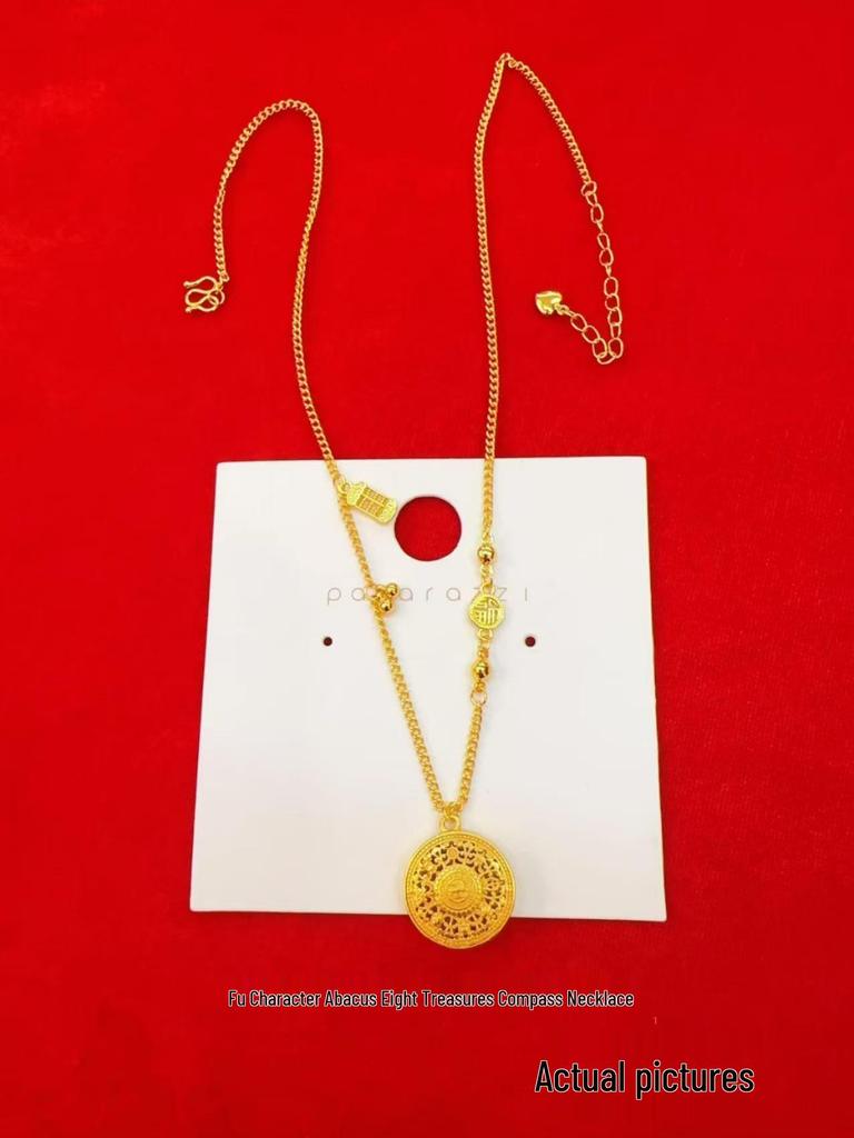 Chinese Antique Sand Gold Filigree Compass Pendant Necklace for Women