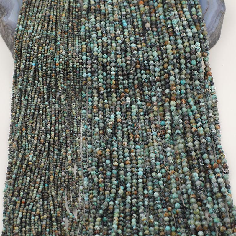 Natural African Pine Stone Faceted Round Bead Necklace (2-4mm)