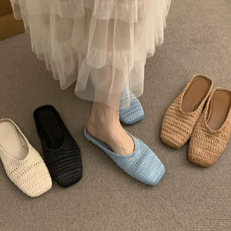 French hollow bag head slippers summer wear 2025 Birkenstocks knitted one-pedal lazy slippers