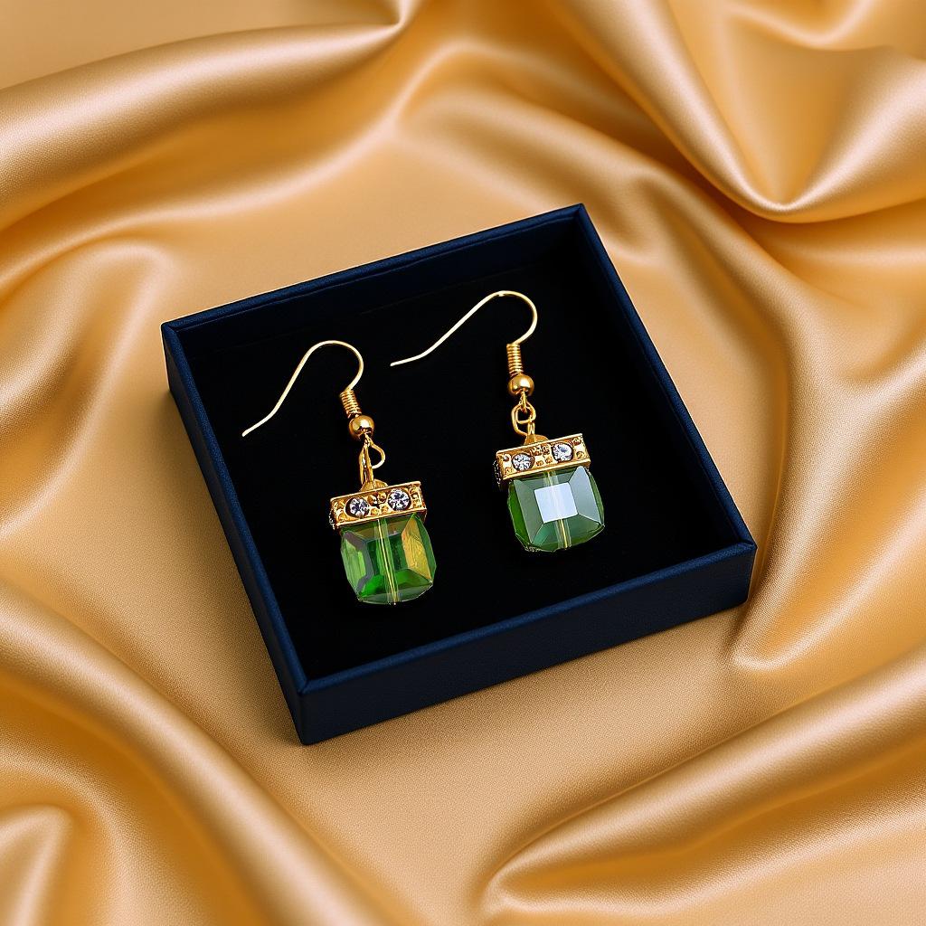 Gröna Kristall Peridot Kuber Hängande Örhängen