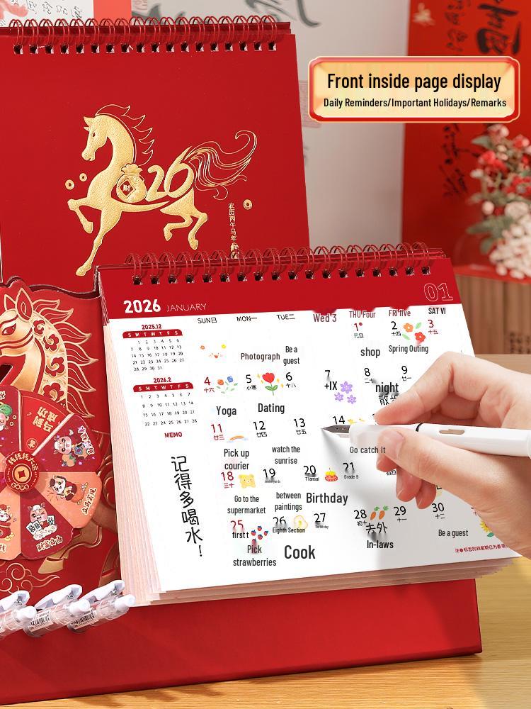 2026 Mini Desk Calendar: Simple Cartoon Style, Irregular Design, Student Planner with Punch Card.