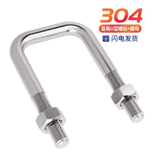 Rätvinklig U-bultmutterset i 304 rostfritt stål med fäste för fyrkantrör