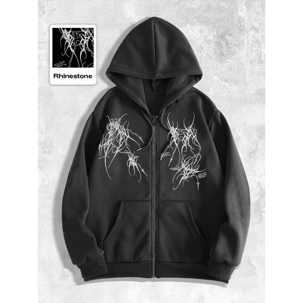 Herrs Huvtröja med Dragkedja - Heltäckande Dragkedja, Svart Höst/Vinterfärg, Urban Streetwear