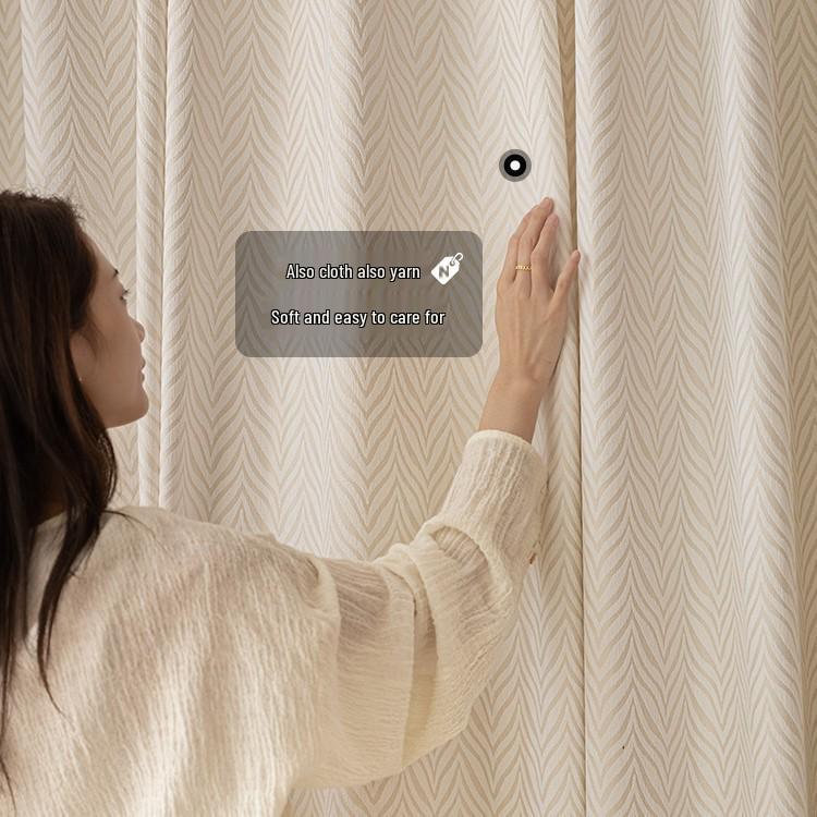 Cream Chenille Jacquard Wavy Sheer Curtains - High-End Translucent, Not See-Through, Ready-Made for Living Room, Korean Style
