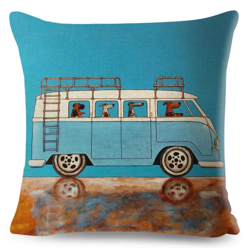 Kör Buss Hund Kudde Dekorativ Söt Tecknad Husdjur Dalmatiner Kuddfodral Polyester Kuddfodral för Bil Soffa Hem,(1)