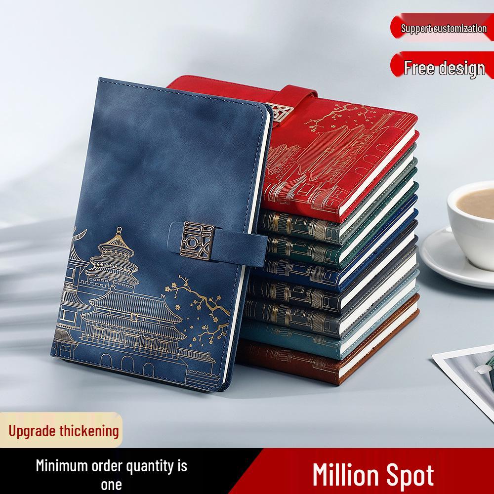 Guochao Anteckningsbok Presentuppsättning: Kinesisk stil mötesprotokollbok inspirerad av Palatsmuseet med logotyp