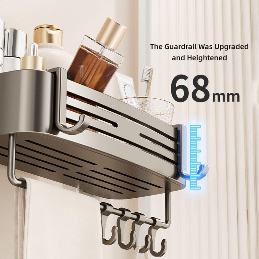 Simple Aluminum Alloy Bathroom Storage Rack Wall Mounted Non Perforated Bathroom Toiletries Holder Shower Storage Shelf Home